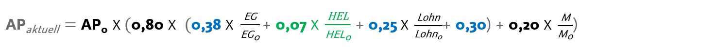 Unsere Preisänderungsklausel setzt sich aus verschiedenen Indexelementen zusammen. Für den Arbeitspreis sind es Index für elektrischen Strom, Erdgasindex, Wärmepreisindex; Investitionsgüter und Lohnindex.